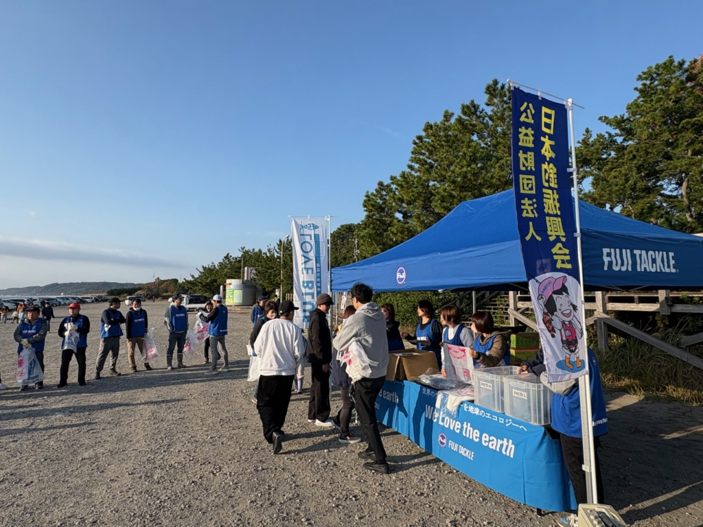 公益財団法人日本釣振興会が、自然と共存できる環境づくり目指して設けられた、環境美化活動「水辺感謝の日」には、毎年全国で約15,000人が参加し、水辺の清掃活動を実施しており、さがらサンビーチの清掃活動には92名の皆さんにご参加をいただきました。