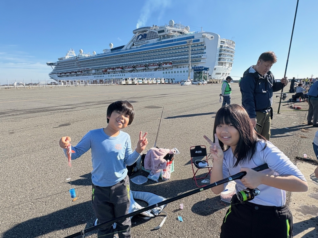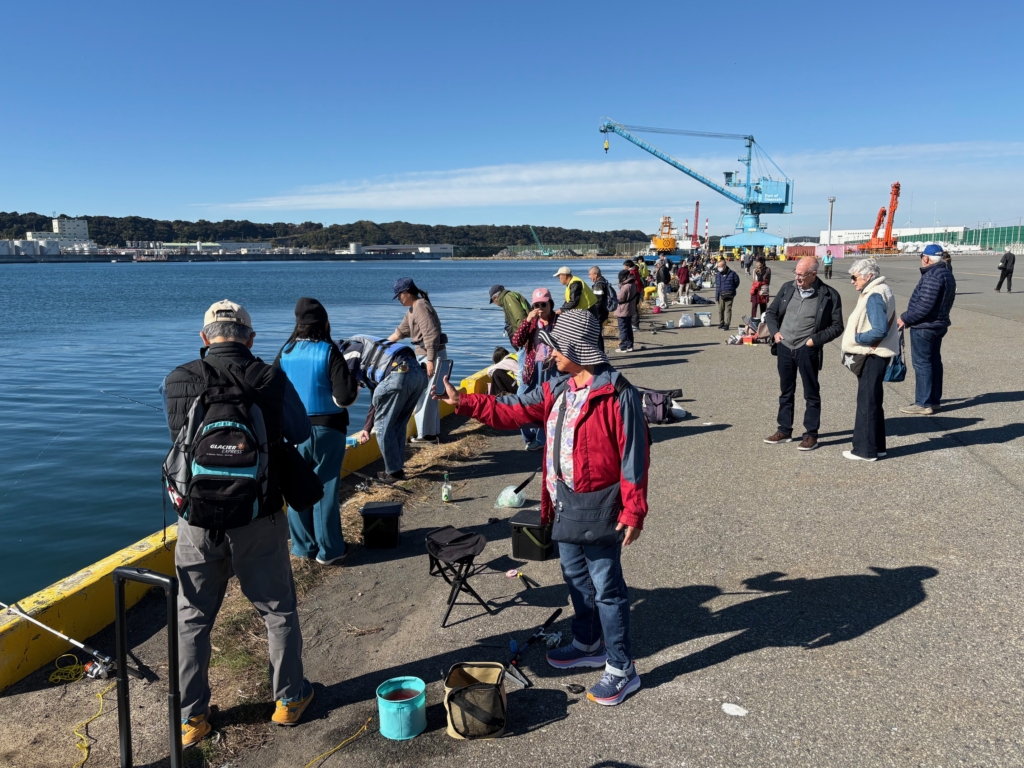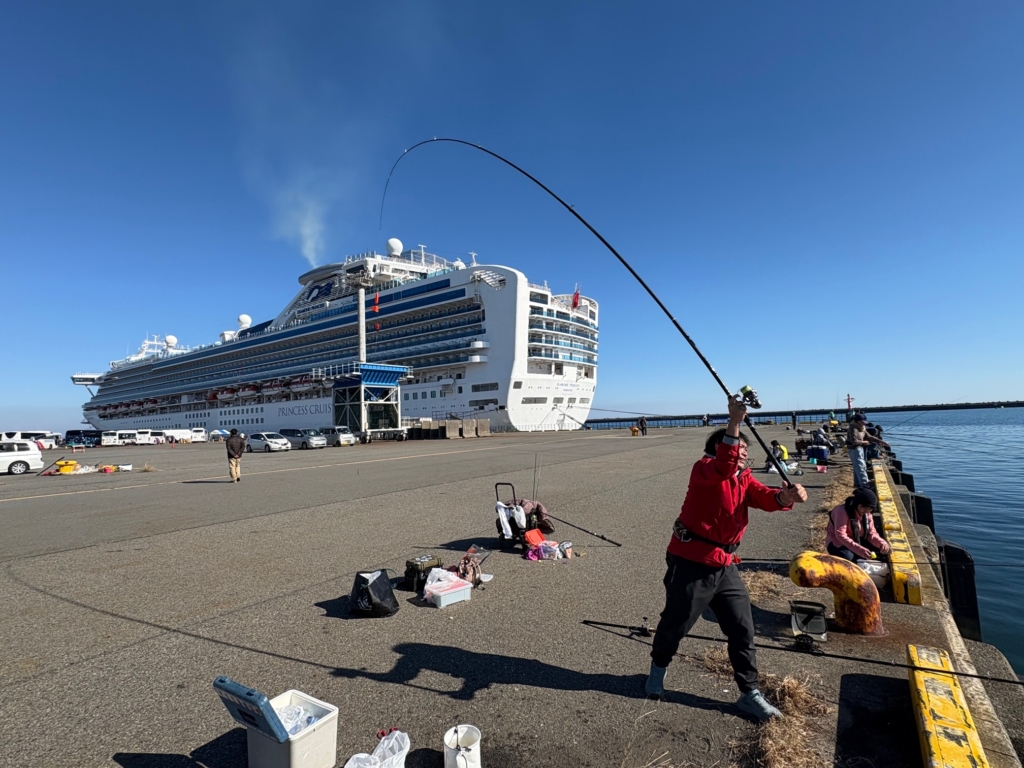 当日は、外国客船「ダイヤモンド・プリンセス」の寄港に合わせ、各種歓迎イベントとともに同日開催イベントとして、多くの方々に普段は開放していない岸壁で、釣りを楽しんでいただきました。