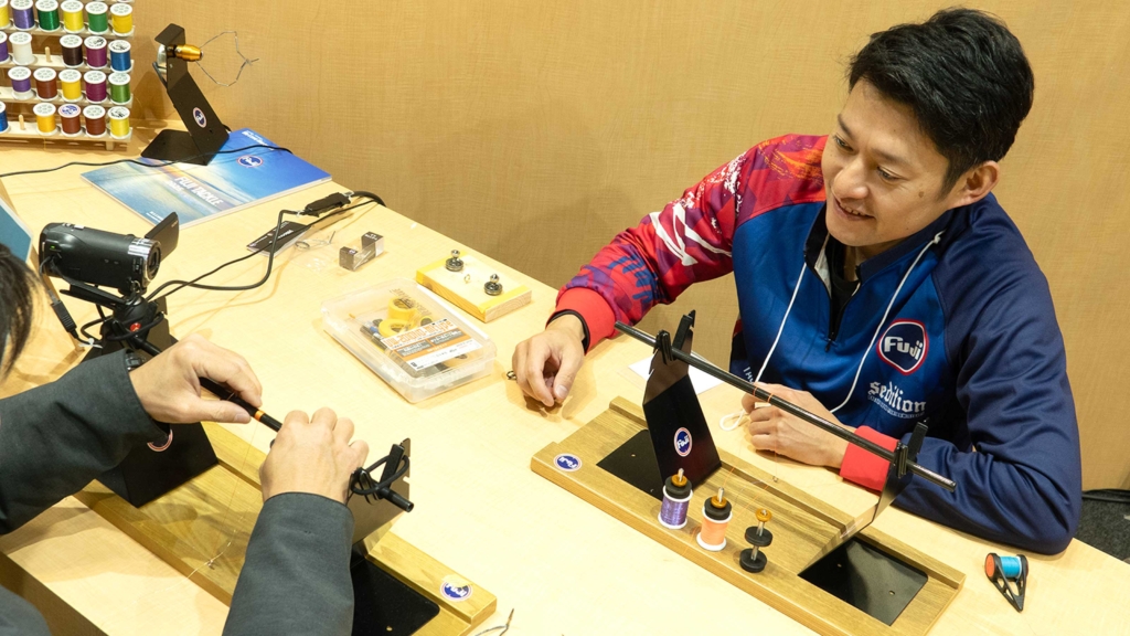 一方、津島氏はロッドビルダーとして、誰でも気軽にチャレンジできるベーシックなロッドビルディングデモを実施し、多くの来場者にFujiのものづくりやロッドビルディングの楽しさを広める活動に貢献されてきました。