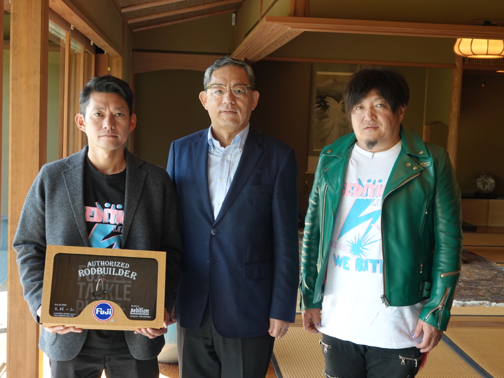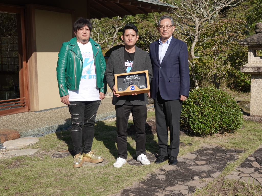式典には、フィールドスタッフとして活動される sedition のセンドウ アキラ氏、そして「AUTHORIZED RODBUILDER」として認定を受けた津島 久八氏をお迎えし、認定証の贈呈が行われました。